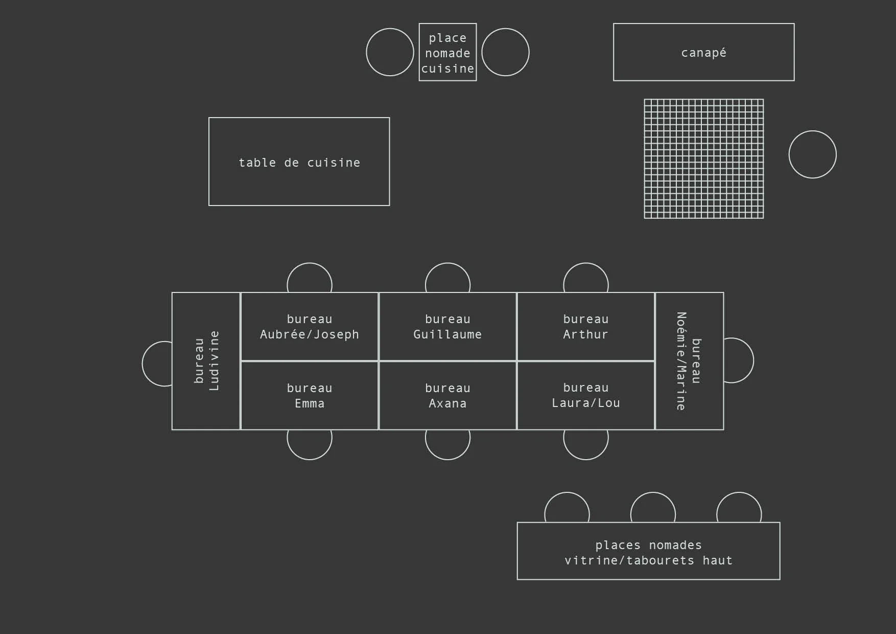 Pas de bureau fixe, vous pouvez vous installer là où il y a de la place, à part sur les bureaux des coworkers permanents.